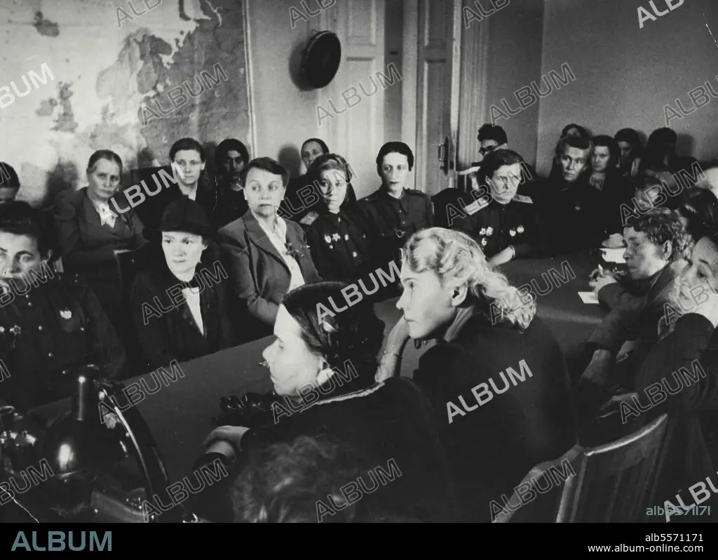 Fourth Soviet Women's Anti-Fascist Meeting -- The second plenary session of the Soviet Women's Anti-Fascist Committee took place on Australia 24, 1944 in the Committee building. Delegates to the fourth Soviet Women's Anti-Fascist meeting were present. Above, a view of the conference hall. September 3, 1951. (Photo by V. Musinov).
