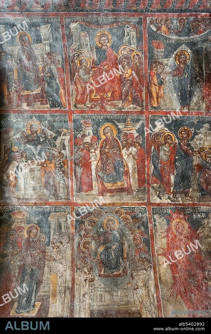 Ancient frescoes, wall paintings depicting the life of Jesus, Panagia and Sotiras Church, Greek Orthodox church, Roustika, Crete, Greece, Europe