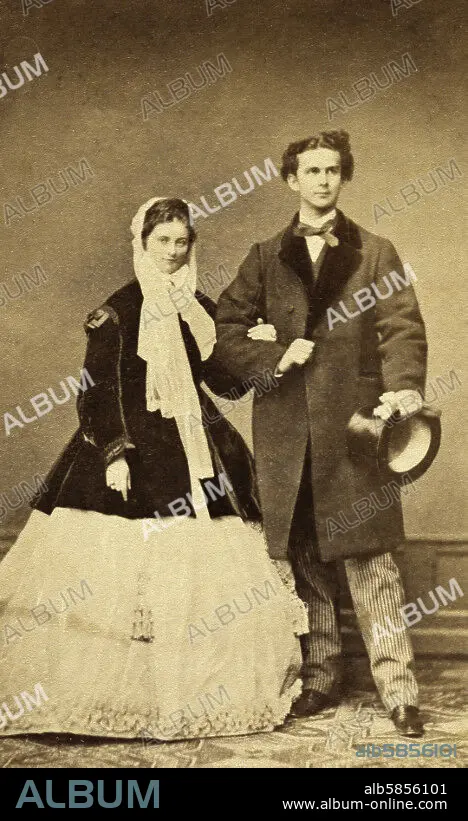 Caption: King Ludwig II of Bavaria (1834-1886), with his spouse Sophie de Wittelsbach. Ca. 1865.