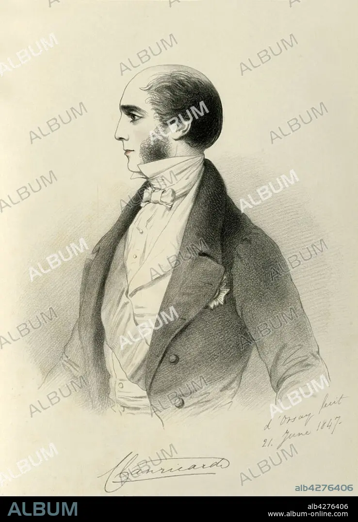 'The Marquis of Clanricarde', 1847. Portrait of British Whig politician Ulick de Burgh, 1st Marquess of Clanricarde (1802-1874). De Burgh served as Captain of the Yeomen of the Guard, Postmaster General, and Ambassador to Russia. From "Portraits by Count D'Orsay", an album assembled by Lady Georgiana Codrington. [1850s]
