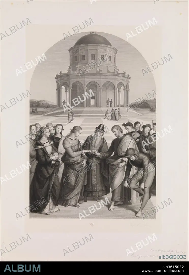 Marriage of Joseph and Mary. Artist: After Raphael (Raffaello Sanzio or Santi) (Italian, Urbino 1483-1520 Rome); Rudolf Stang (German, 1831-1927). Dimensions: Plate: 33 3/8 x 22 in. (84.8 x 55.9 cm)