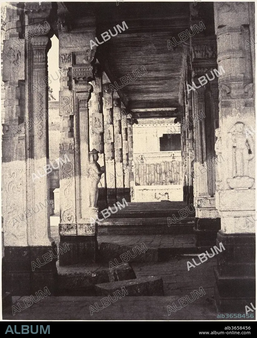 Caption: Side Colonnade in the Muroothappa Sarvacar Mundapam. Artist: Linnaeus Tripe (British, Devonport (Plymouth Dock) 1822-1902 Devonport). Dimensions: Image: 36.5 x 29.1 cm (14 3/8 x 11 7/16 in.)