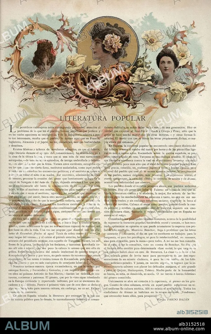 Automatic translation: Popular literature, article signed by Emilia Pardo Bazán, published in the modernist magazine Album-Salón, January 1900