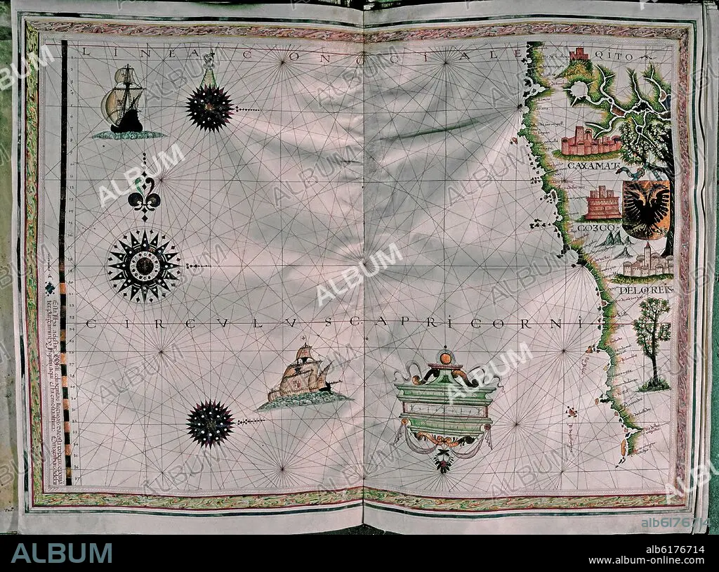 MAP OF THE PACIFIC COAST - SOUTH AMERICA - PORTULAN ATLAS - 1568