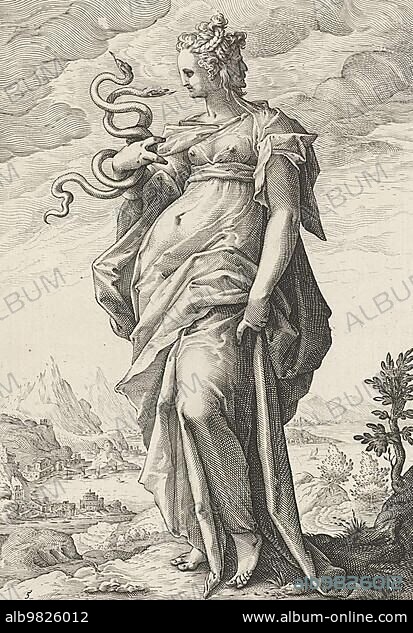 Caution; Prudentia; Goddess for Prudence and Wisdom; 1595; Historic; digitally restored reproduction from a prehistoric original