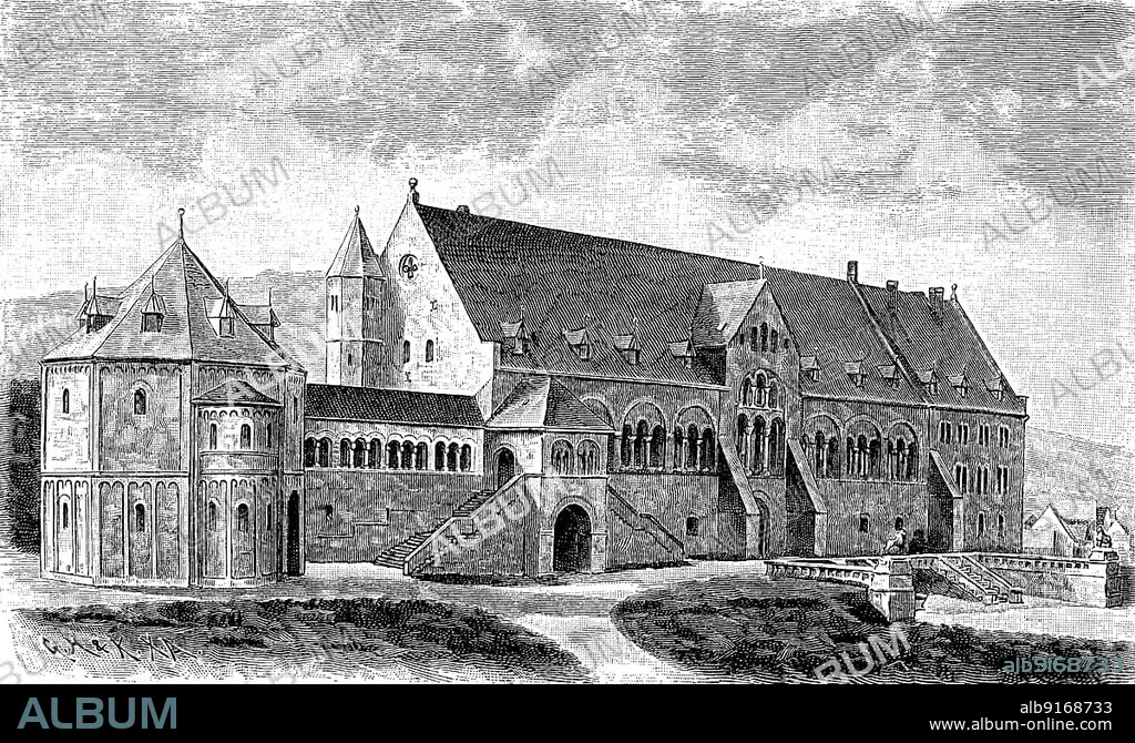 Caption: The imperial house of the imperial palace of Goslar, the oldest preserved imperial palace, from the 11th century, Germany, digitally restored reproduction of a 19th century original, exact original date not known, Europe