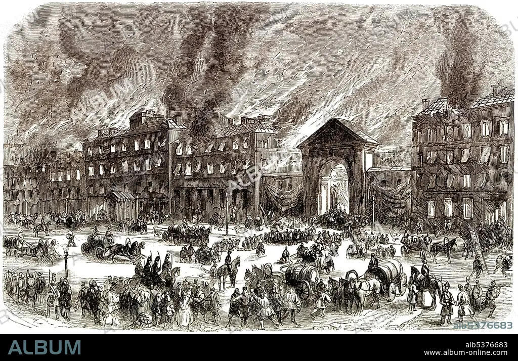 Historic drawing, 19th century, revolt during the times of Russian nihilism, blaze in St. Petersburg, Russia, 1862, Europe.