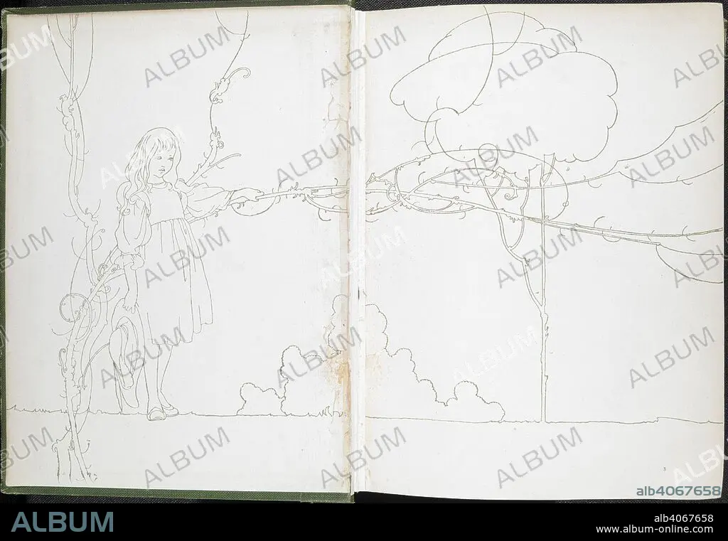 A line drawing showing Mary Lennox in the garden. The secret garden / by Frances Hodgson Burnett ; illustrated by Charles Robinson. London : William Heinemann, 1911. Source: RB.23.a.35505 front end paper.