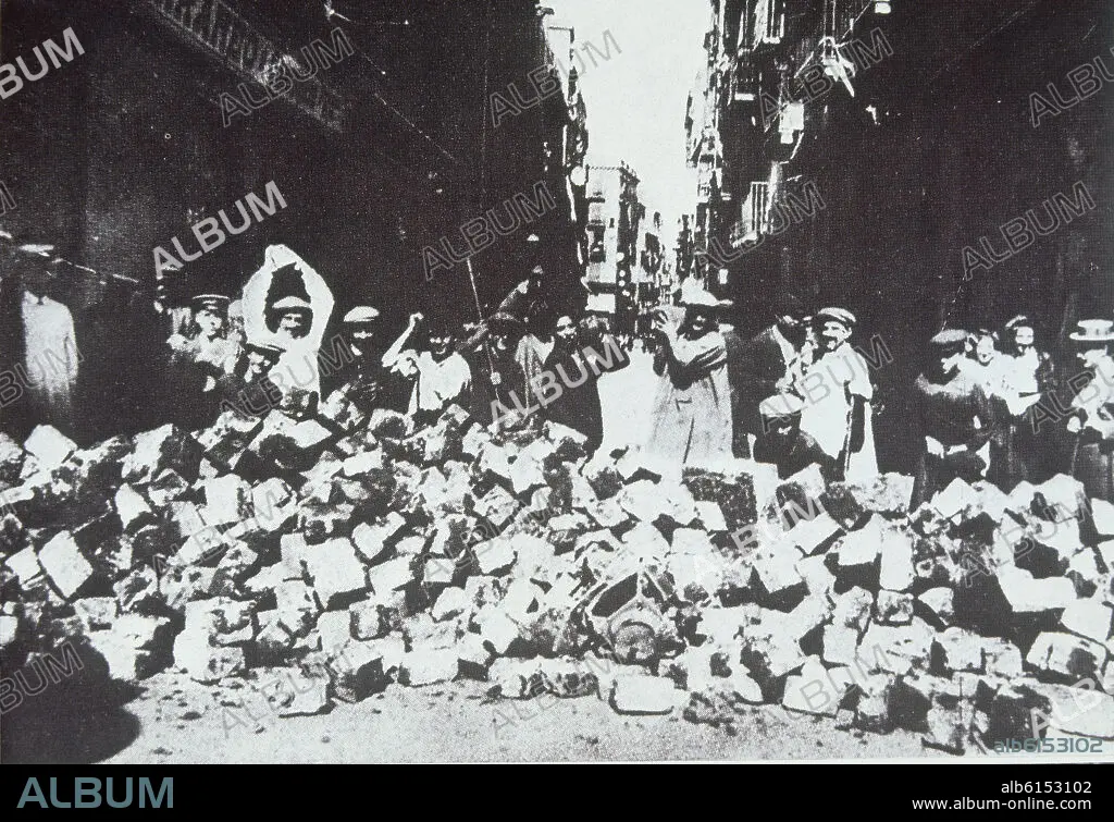 HªCATALUNA-FOTOGRAFIA-26/7/1909-SEMANA TRAGICA-BARRICADA-BARCELONA