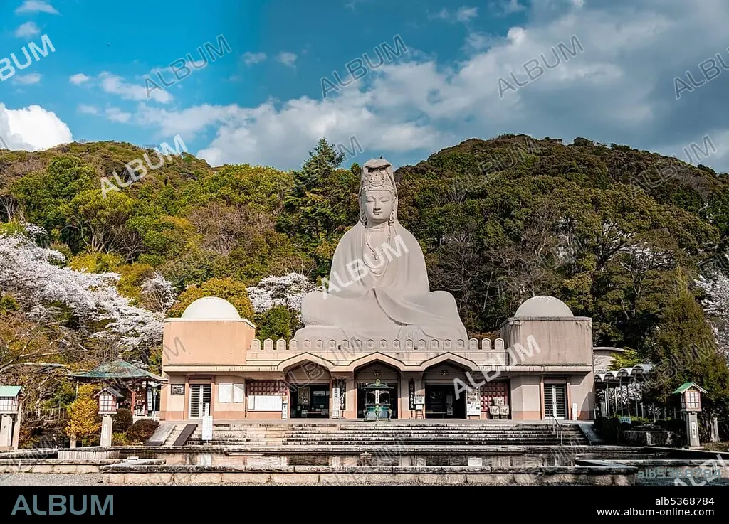 Caption: Giant Buddha statue, Ryozen Kannon statue, KÅdaiji Temple, Shimokawaracho, Kyoto, Japan, Asia