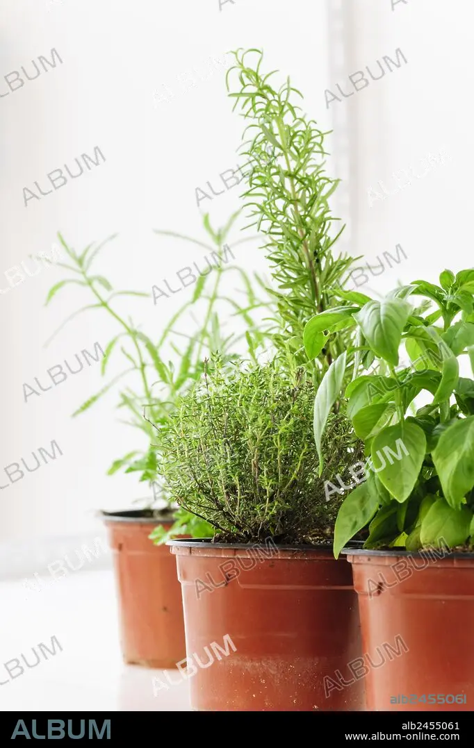 tomillo (Thymus vulgaris) subarbusto de la familia de les labiadas y romero (Rosmarinus officinalis) , planta de la fammilia Lamiaceae, plantas aromaticas,mallorca,islas Baleares,spain