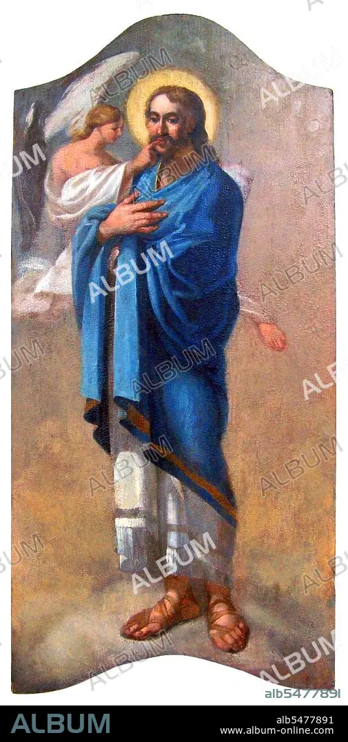 Title: Middle East-Greece: Catholic icon depicting the prophet Isaiah with an angel who anoints his lips with fire to spread the words of God. Late 18th century