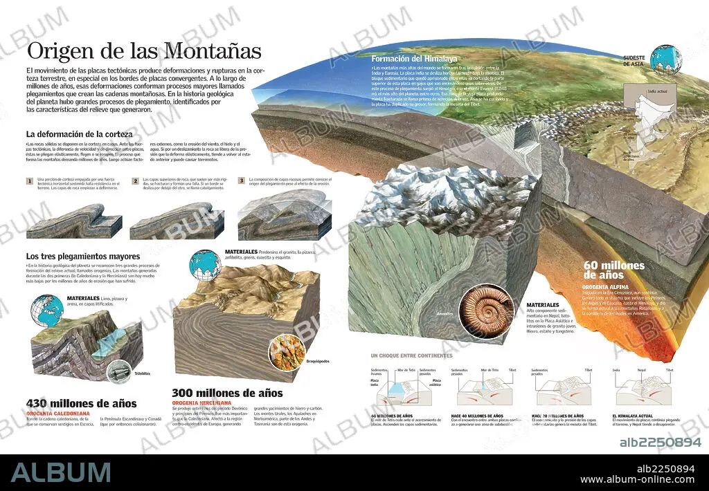 Infographic about of mountain formation and orogenic processes that originated the main mountain ranges.