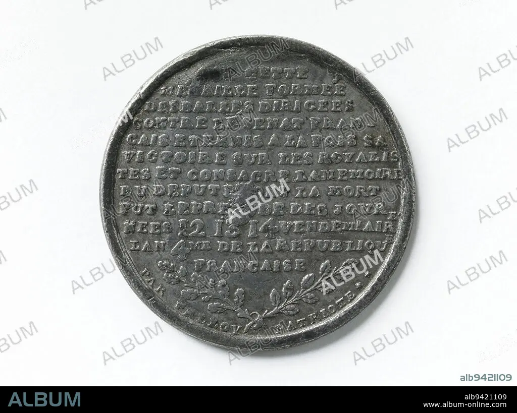 Caption: Armand-Constant Tellier, known as Adrien Tellier (?-1795), deputy to the Constituent Assembly (1789-1791), deputy to the National Convention (1792-1795), 1795, Palloy, Pierre-François, Engraver of medals, In 1795, Numismatics, Medal, Pewter, Dimensions of the work: Diameter: 4.1 cm, Weight (type dimension): 23.86 g