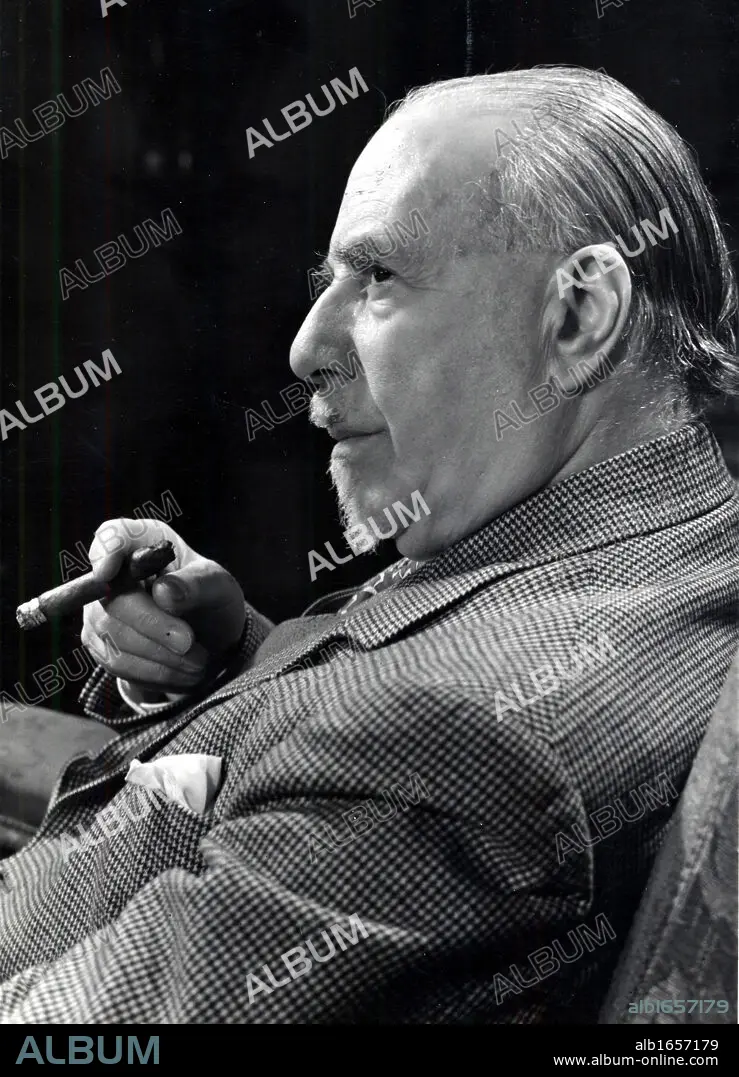 Caption: Thomas Beecham (1879-1961) English conductor and impresario. Beecham holding a cigar. Photograph by courtesy of EMI