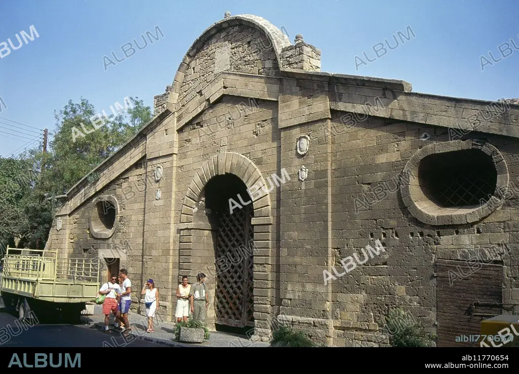 Caption: "People in the sunshine outside the arched entrance to the Famagusta Gate, constructed in 1567 and designed as the largest and most elegant in Nicosia, now serving as a cultural centre in the city" *** Local Caption ***