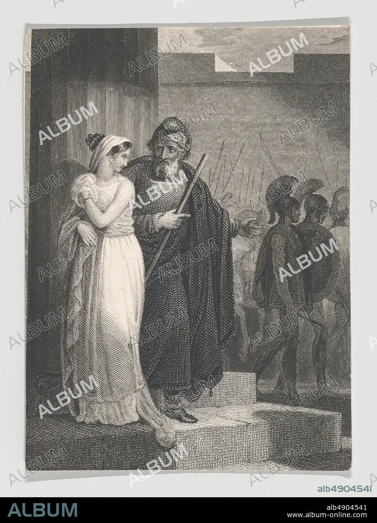 Caption: After Henry Corbould, Pandarus and Cressida (Shakespeare, Troilus and Cressida, Act 1, Scene 2), After Henry Corbould (British, London 17871844 Robertsbridge, East Sussex), Charles Rolls (British, 18001857), William Shakespeare (British, Stratford-upon-Avon 15641616 Stratford-upon-Avon), 182540, Etching and engraving, Sheet: 3 7/16 × 2 9/16 in. (8.8 × 6.5 cm), Prints