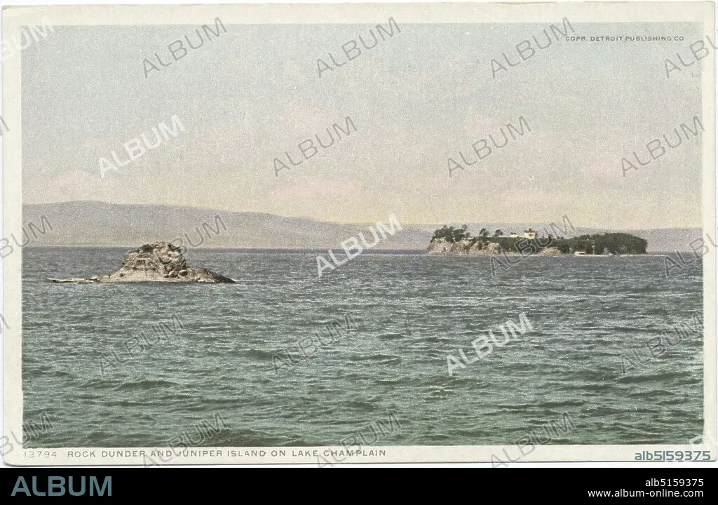 Caption: Rock Dunder and Juniper Island, Lake Champlain, Vt., still image, Postcards, 1898 - 1931