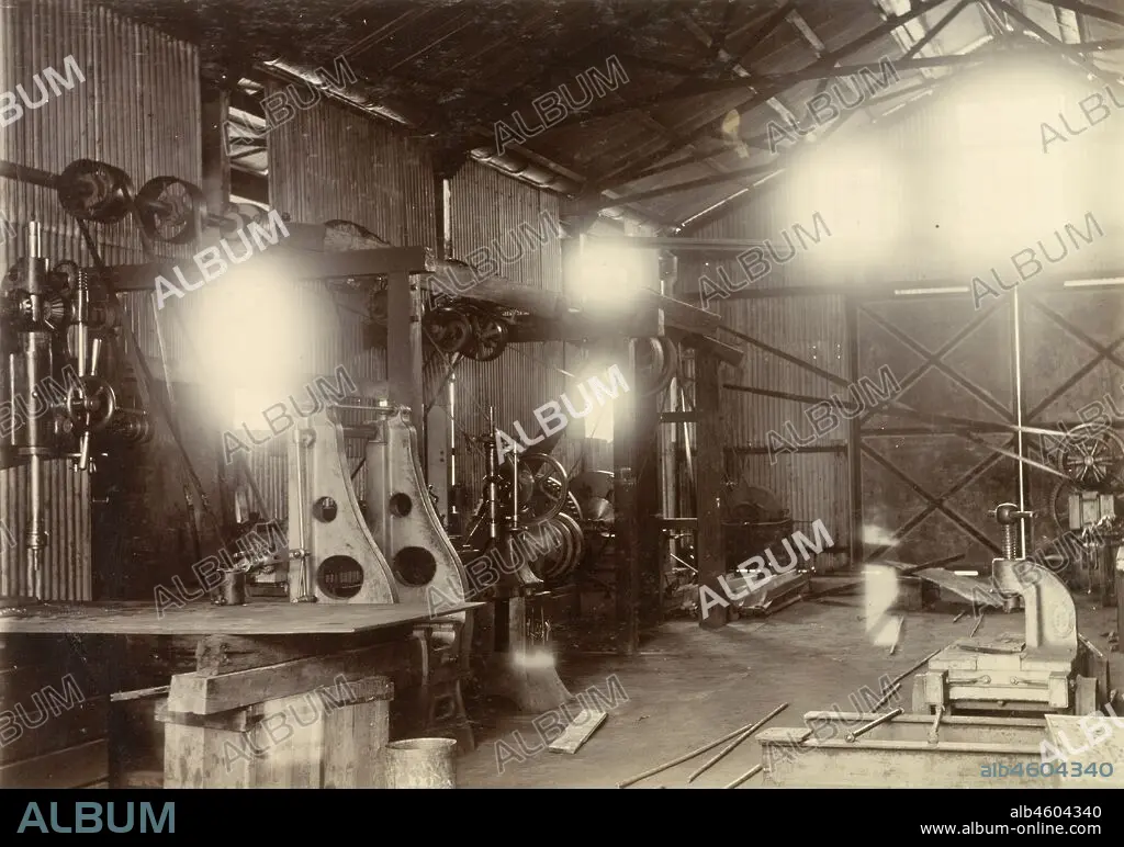 Caption: Sierra Leone, View showing interior of workshop.Caption reads: S.L.G. Machine Shop, North End, July 3rd 1898, 1898. 1999/221/1/34/35.