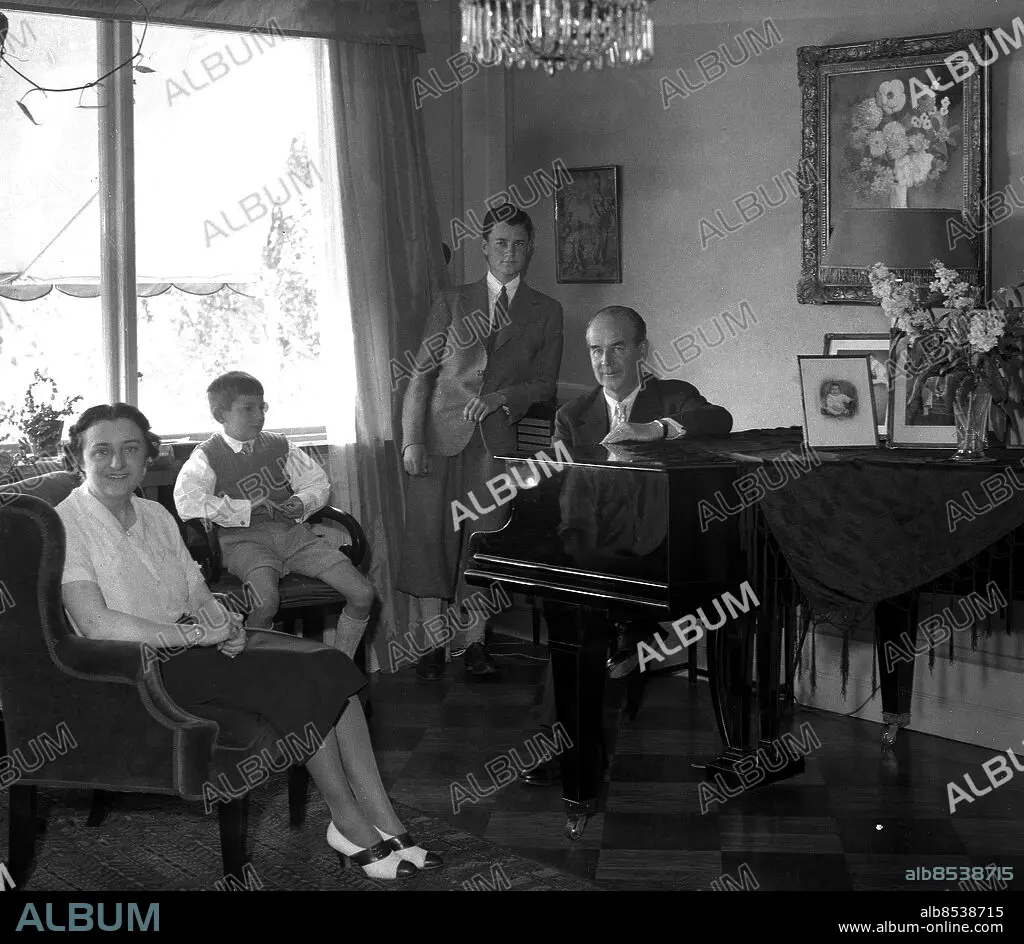 Arkiv 1937 . Hemma hos skådespelarparet Alice och Ernst Eklund i Bromma. Alice spelade mestadels på teatrar där hennes man Ernst var chef och regissör. På 60-talet spelade de mot varandra i Olle Hedbergs "Den mörknande framtid är vår" på TV-teatern. Ernst Eklund skrev flera egna dramer.. Alice and Nils Eklund, actors with their family in Bromma.. Foto: TT / Kod 1900