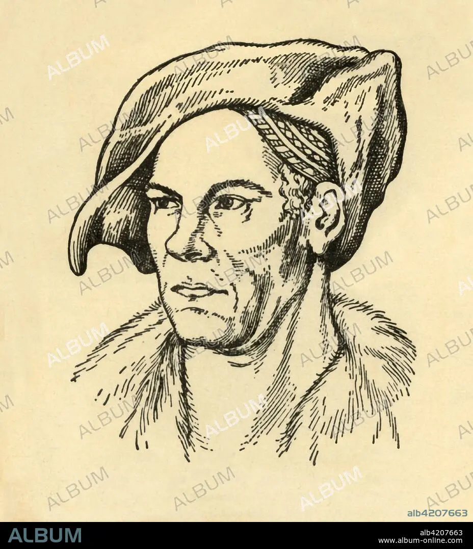 Caption: 'Jacob Fugger', (1933). Portrait of Jakob Fugger (1459-1525), German businessman, mining entrepreneur and banker. From "Gestalten Der Weltgeschichte", a book of cigarette-card portrait miniatures of figures in world history from the last four hundred years. [Germany, 1933]