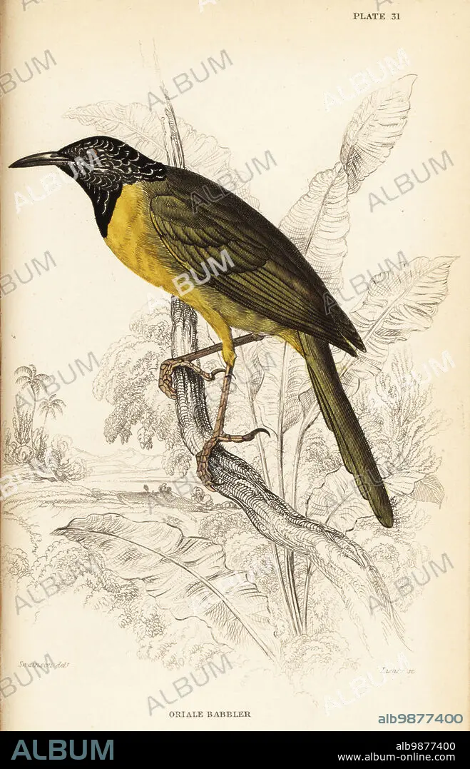 Caption: Oriole warbler, Hypergerus atriceps. (Oriale babbler, Crateropus oriolides.) Handcoloured steel engraving by William Lizars after an illustration by William John Swainson from his Birds of Western Africa in Sir William Jardines Naturalists Library: Ornithology, Lizars, Edinburgh, 1837.