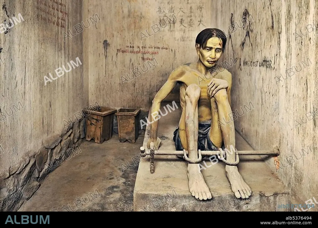Prisoner, sculpture, in the "tiger cage" prison cell, war museum, Ho Chi Minh City, Saigon, Vietnam, Asia