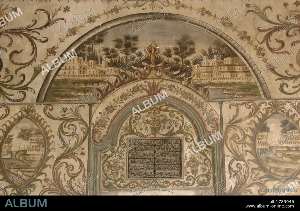 Caption: Albania. Tirana. The Et'hem Bey Mosque. Construction was started in 1789 by Molla Bey and it was finished in 1823 by his son Haxhi Ethem Bey, great-grandson of Sulejman Pasha. Inside. Frescoes.
