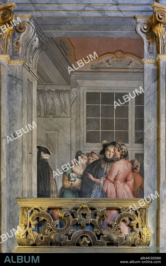 Caption: Brescia, Teatro Grande: the Entrance Hall or Foyer. The room is perhaps one of the most admirable examples of 18th-century architectural splendor applied to a theatre. The ornamental decoration was entrusted to the Venetian painters Francesco Battaglioli and Francesco Zugno. Detail of the decoration.