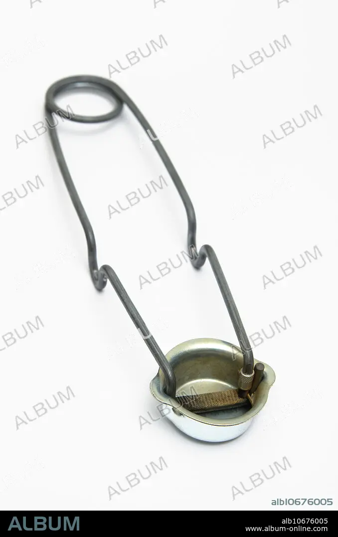 Caption: A flint spark lighter is used for ignition of gases. When its handle is squeezed a small piece of ferrocerium is rubbed against a rough steel surface, which produces sparks. Ferrocerium is an alloy composed of cerium, lanthanum, praseodymium, neodymium, iron and magnesium.