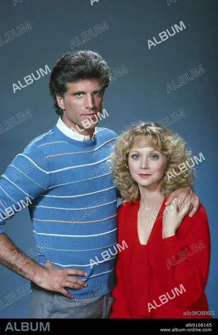 SHELLEY LONG and TED DANSON in CHEERS, 1982, directed by GLEN CHARLES and JAMES BURROWS. Copyright NBC-TV.
