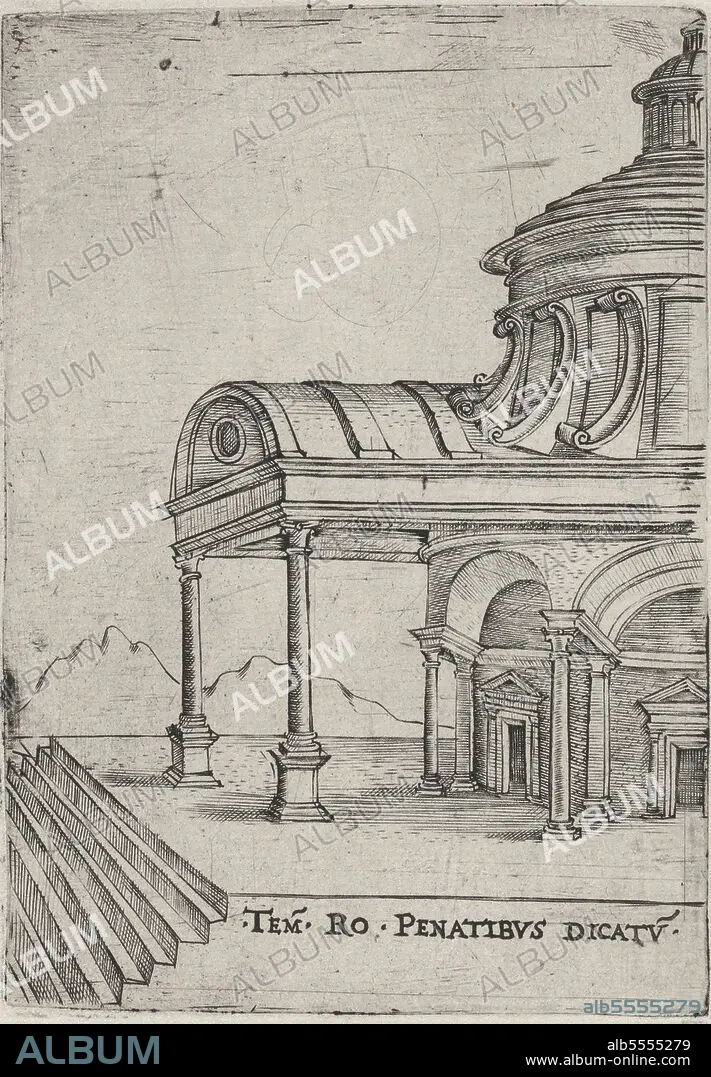 Tem. Ro. Penatibus Dicatu, from a Series of 24 Depicting (Reconstructed) Buildings from Roman Antiquity, Plate ca. 1530-50.