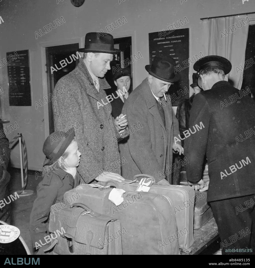 Transatlanticdirektören Gunnar Carlsson ankommer på Torslanda ifrån Unnra i London. Februari 1946. *** Local Caption *** GP. KAMERAREPORTAGE.