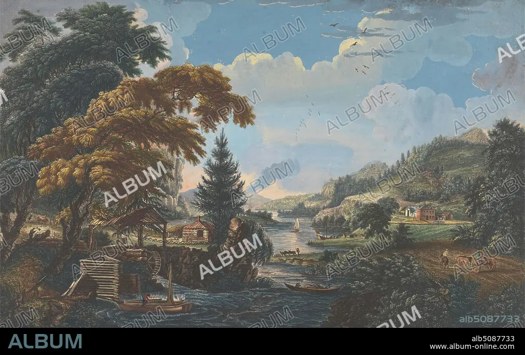 Caption: One of Six Remarkable Views in the Provinces of New York, New Jersey and Pennsylvania from SCENOGRAPHI AMERICANA: A Design to represent the beginning and completion of an American Settlement or Farm., James Peak, 17031782, British, Paul Sandby RA, 17311809, British, after drawings by Thomas Pownall, 17221805, British, 1761, Color engraving, Sheet: 13 1/8 x 20 9/16in. (33.3 x 52.2cm)