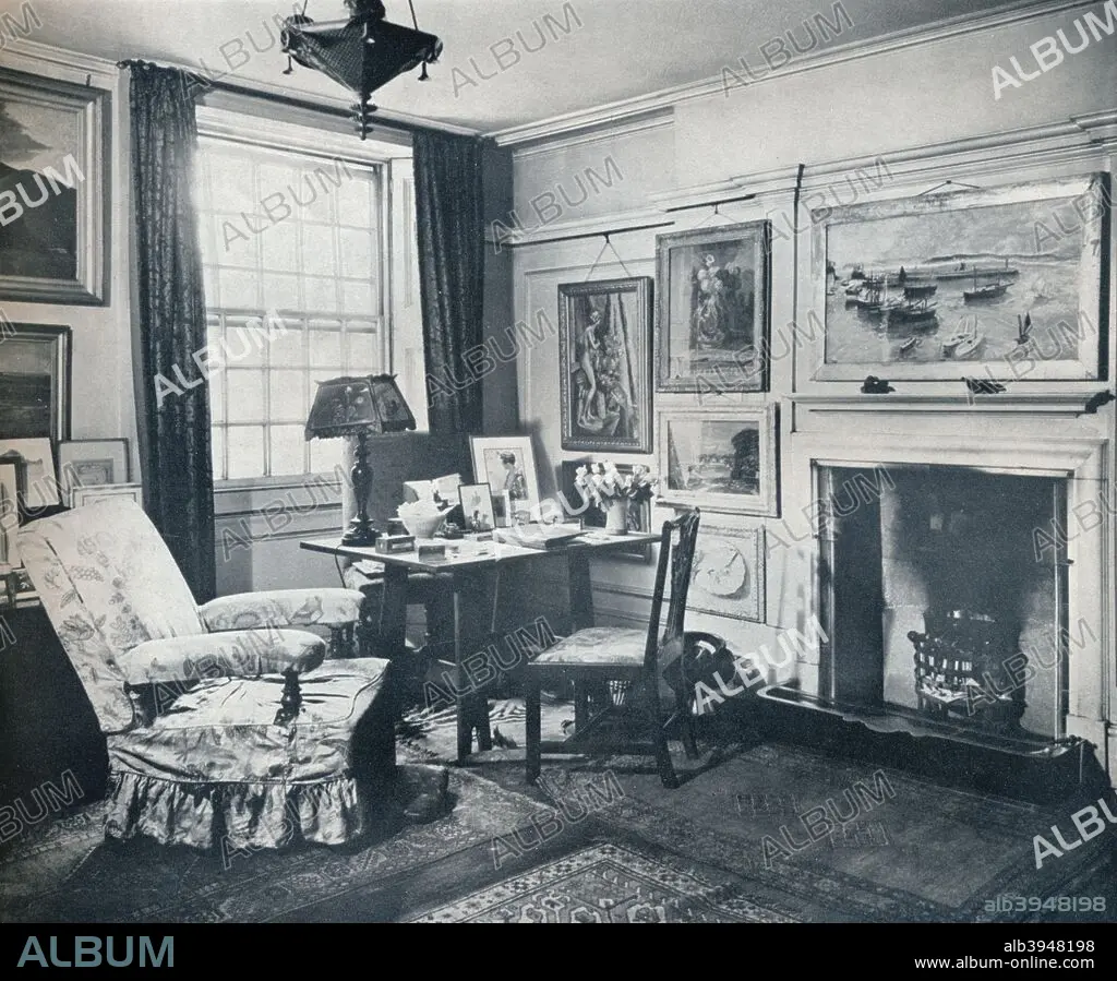 Caption: 'Edward Marsh's living-room', c1934. The living room of Sir Edward Howard Marsh (1872-1953) at 5 Raymond Buildings Gray's Inn. Marsh was a British polymath, translator, arts patron and civil servant. As a civil servant he worked as Private Secretary to a serveral of Great Britain's most powerful ministers, including Winston Churchill. He was also an influential figure within Britain's homosexual community. From The Studio Volume 108. [The Offices of the Studio, London, 1934]