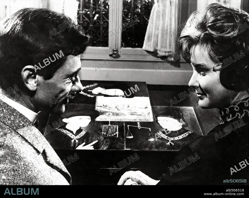 ALIDA VALLI and ROBERT LAMOREAUX in SIGNE ARSENE LUPIN, 1959, directed by YVES ROBERT. Copyright CINEPHONIC/GAUMONT/LAMBOR/COSTELLAZIONE.