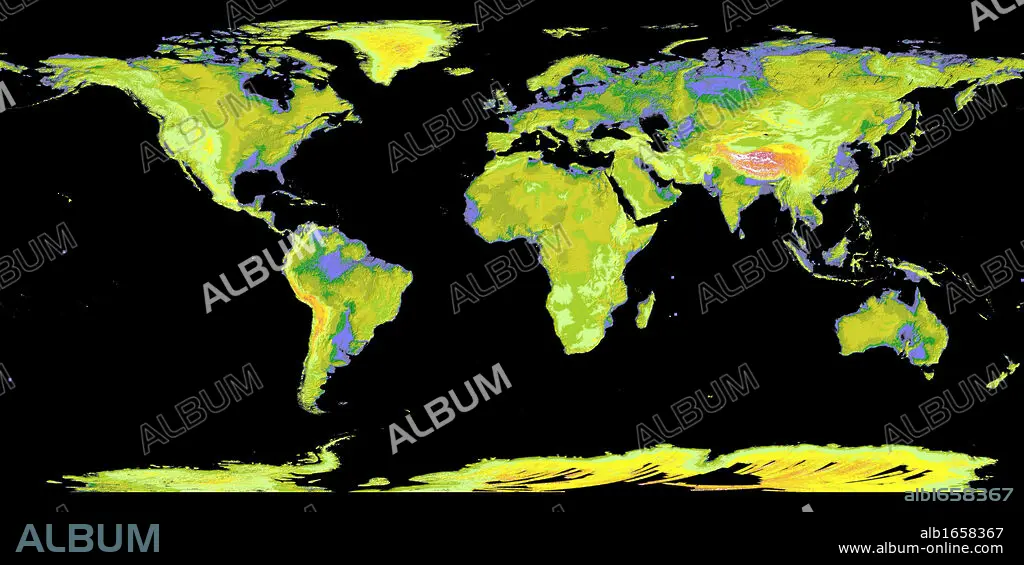 Caption: NASA and Japan's Ministry of Economy, Trade and Industry's Advanced Spaceborne Thermal Emission and Reflection Radiometer (ASTER) Global Digital Elevation Model (GDEM) of the world on June 29, 2009. Science Earth Geology