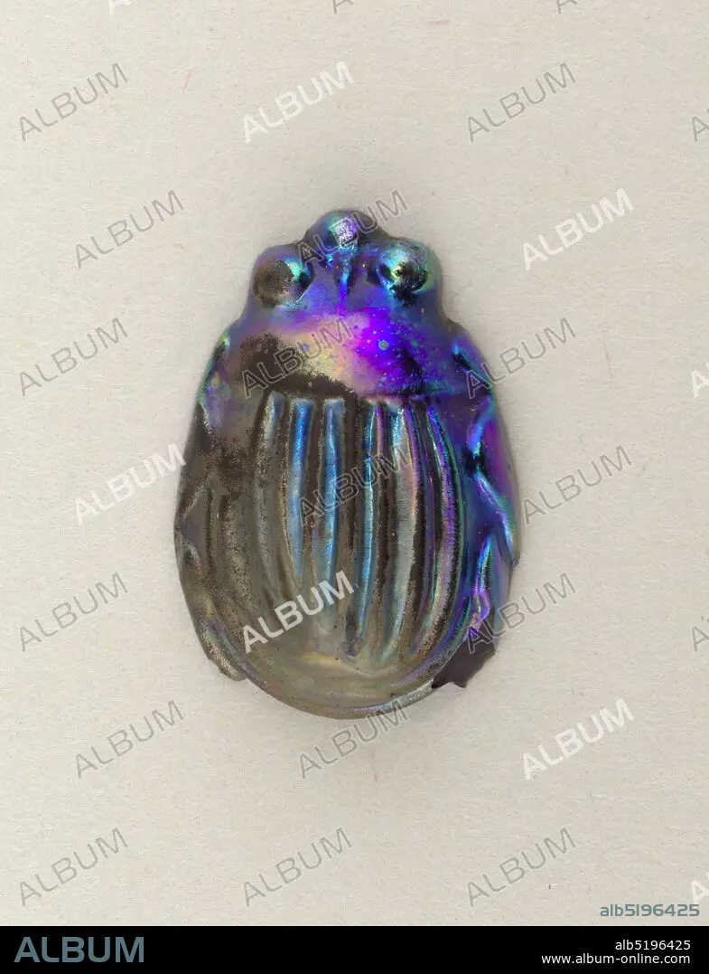 Caption: Scarab, Tiffany & Company, American, established 1853, Mold-blown favrile glass, Scarab of blue glass with peacock-blue iridescent back., New York, New York, USA, ca. 1910, jewelry, Decorative Arts, Scarab