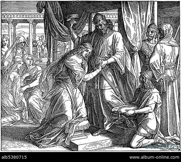 Woodcut, Esther, Book of Esther, 2, 17, Old Testament, Catholic Picture-Bible