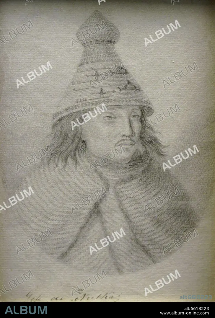 Caption: 'Maquinna, chief of the Nuu-chah-nulth people of Nootka Sound' - Malaspina Expedition, 1789-1794, Drawing, 18,5 x 12,5 cm
