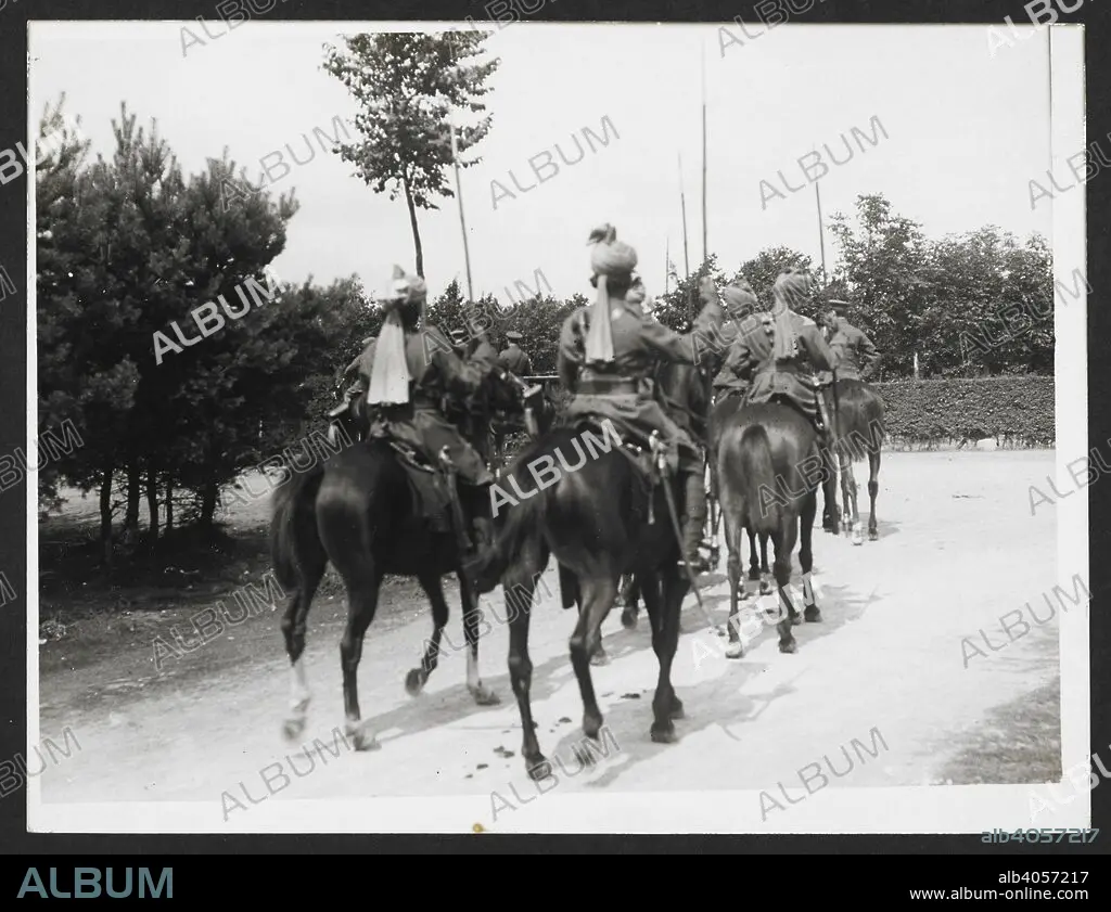 An Indian Cavalry escort to the C. in C. [Blendecques, France]. Rear view of mounted escort of lancers. 18 August 1915. Record of the Indian Army in Europe during the First World War. 20th century, 18 August 1915. Gelatin silver prints. Source: Photo 24/(310).