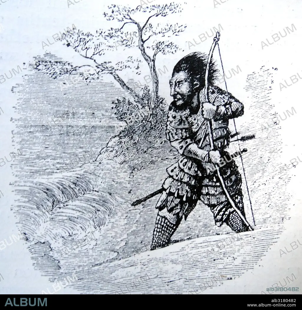 Caption: Illustration of Minamoto no Tametomo (1139-1170) a samurai who fought in the H?gen Rebellion of 1156