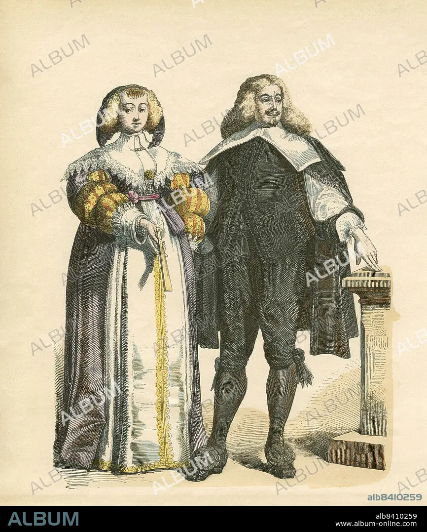 German Noble Couple, Second Third of 17th Century, Illustration, The History of Costume, Braun & Schneider, Munich, Germany, 1861-1880