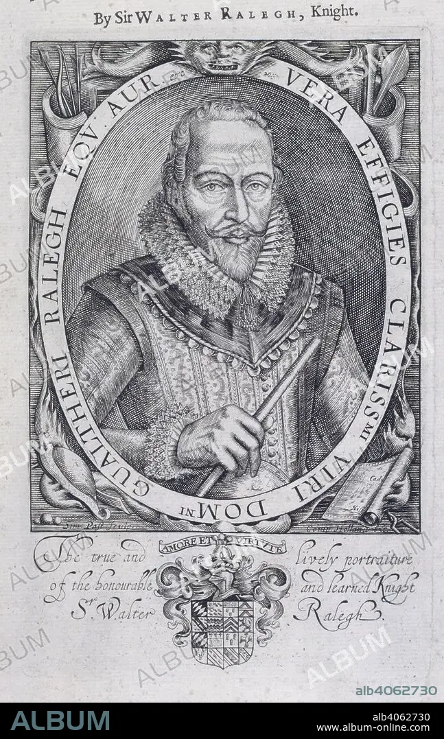 Sir Walter Raleigh (1552-1618). English courtier, navigator and poet. Portrait. The Historie of the World. In five bookes ... Sam Cartwright: London, 1652. Source: 9005.h.2, title page. Language: English.