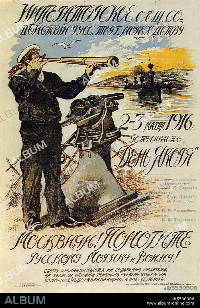 Title: Russia: 'The Imperial Russian Society for Promotion of Trade Seamanship '. Russian World War I propaganda poster, Stepan Matveevich Mukharsky,1916