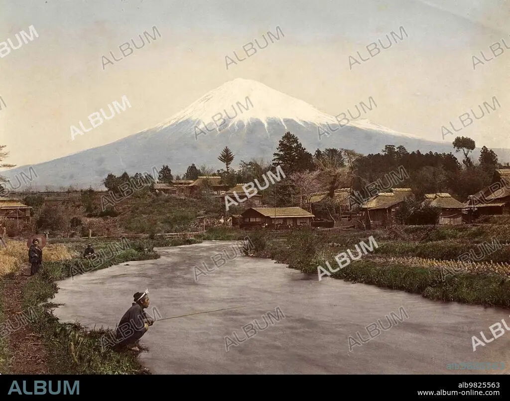View of Mount Fuji from the village of Omiya; 1890; Japan; Historic; digitally restored reproduction from an original of the time; Asia