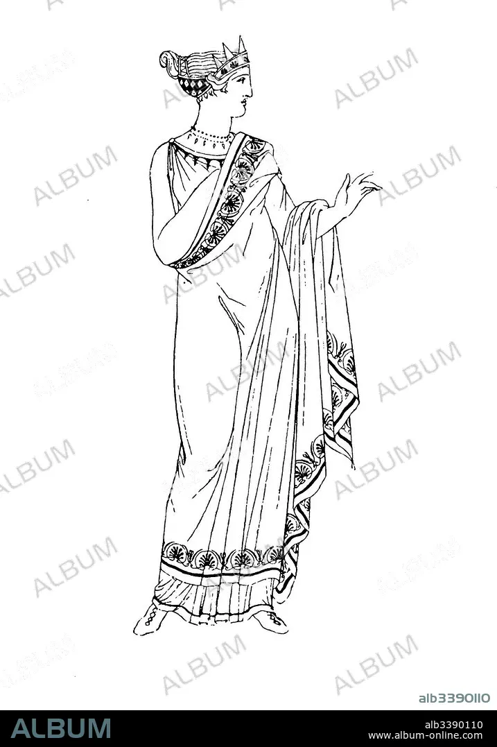 Greece, Greek lady with reversed Himation or Peplos, History of fashion, costume story