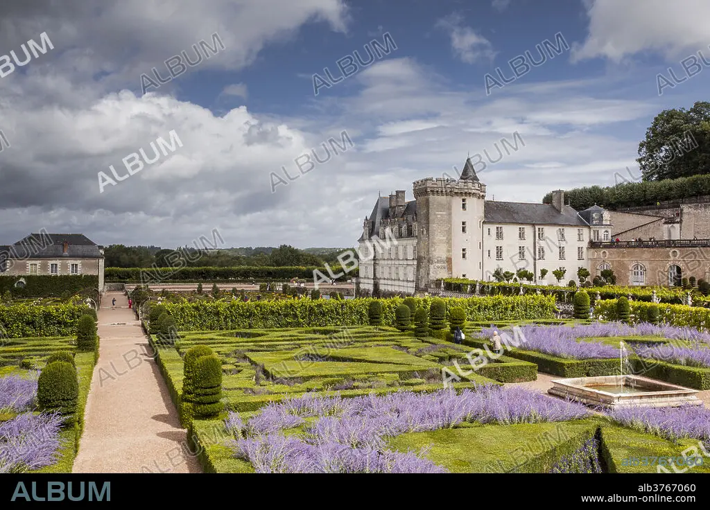 Caption: The beautiful castle and gardens at Villandry, UNESCO World Heritage Site, Indre et Loire, Centre, France, Europe