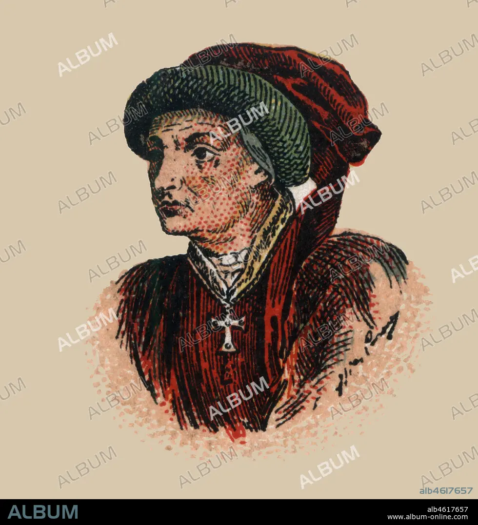 Iñigo López de Mendoza (1398-1458), marqués de Santillana, militar y poeta español del Prerrenacimiento. Grabado de 1900.