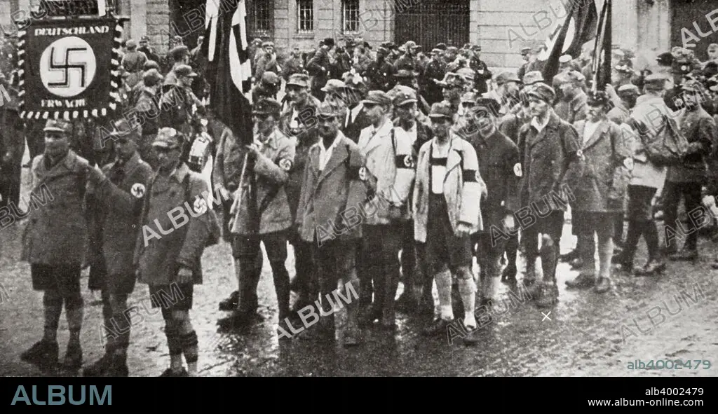 Title: Parade by members of the SA, Weimar, Germany, 1926. Artist: Unknown